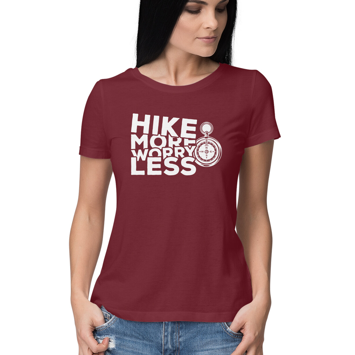Women’s Hike More Worry Less Holiday Printed Half Sleeve Round Neck T-Shirt